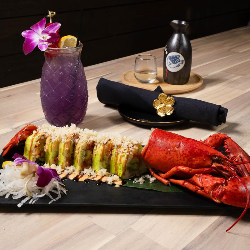 Whole Maine lobster and avocado wrapped in soy paper with sweet soy sauce and mayo.