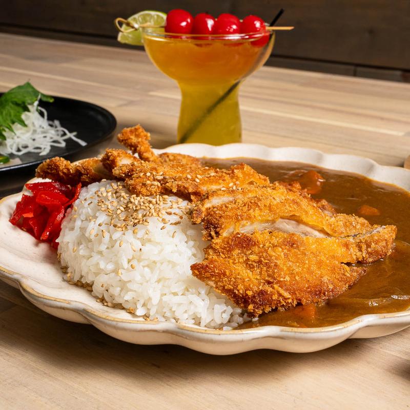 Japanese-style curry served over white rice with a choice of thinly sliced beef, chicken katsu, or fried shrimp.